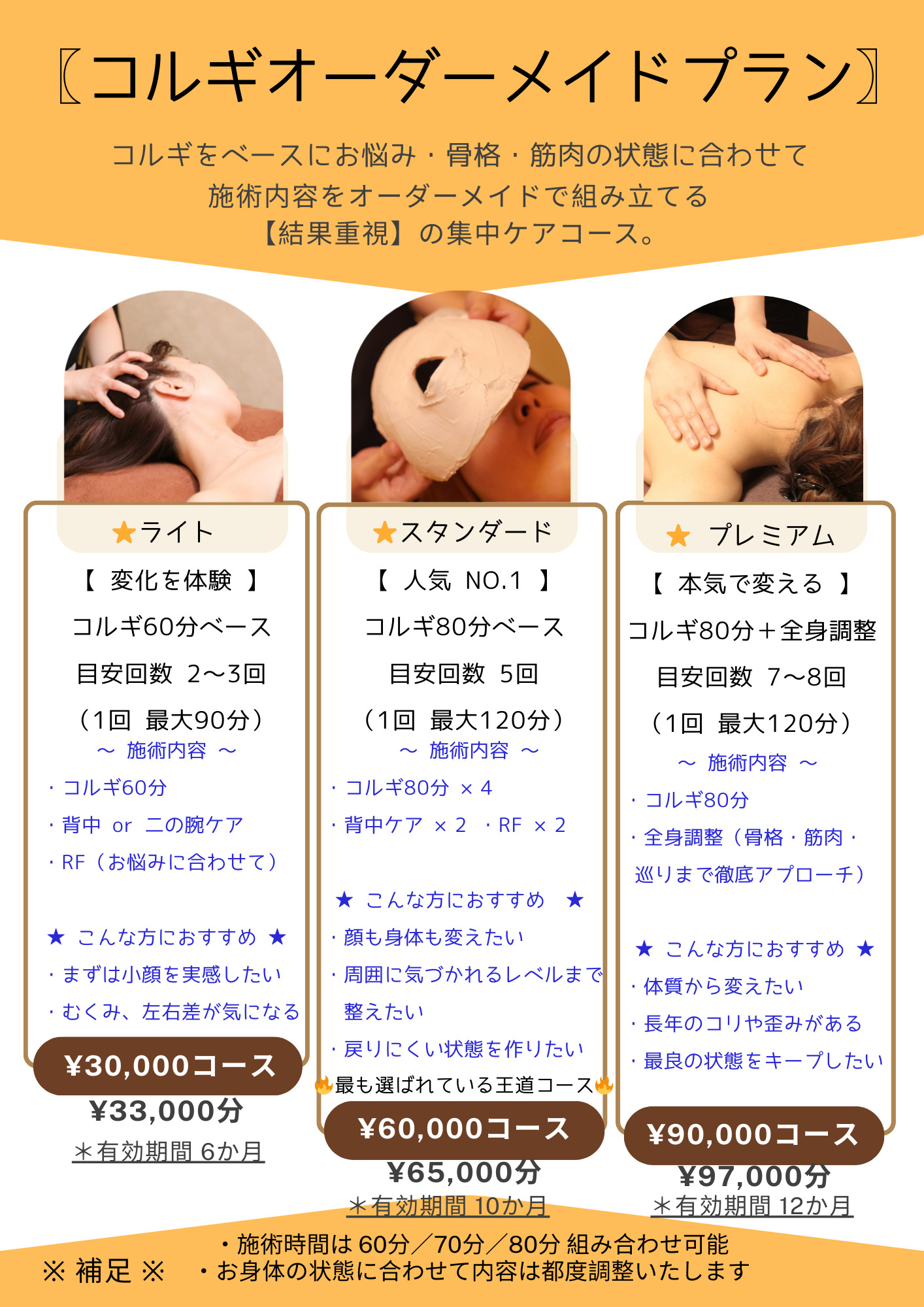 例→コルギ80分+背中・RF 💰 ¥60,000 ( 5000円分お得 )